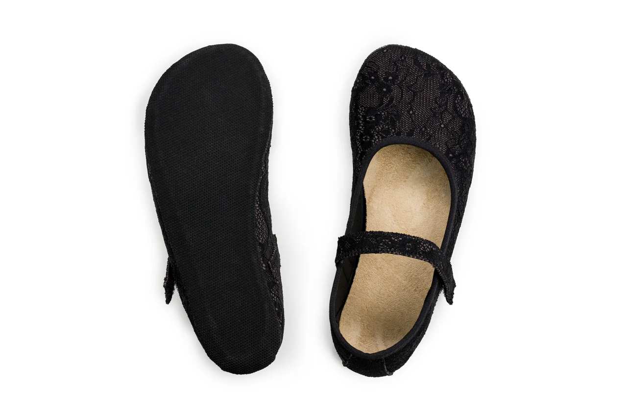 Ahinsa Ananda Ballet flats with black lace puikiai tinka: